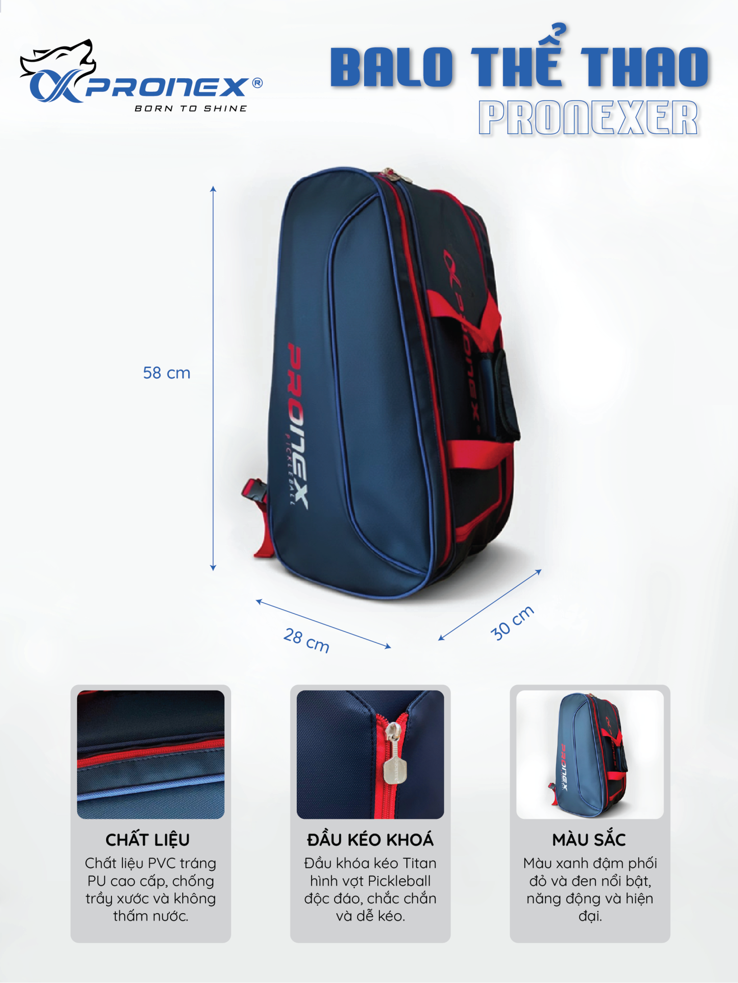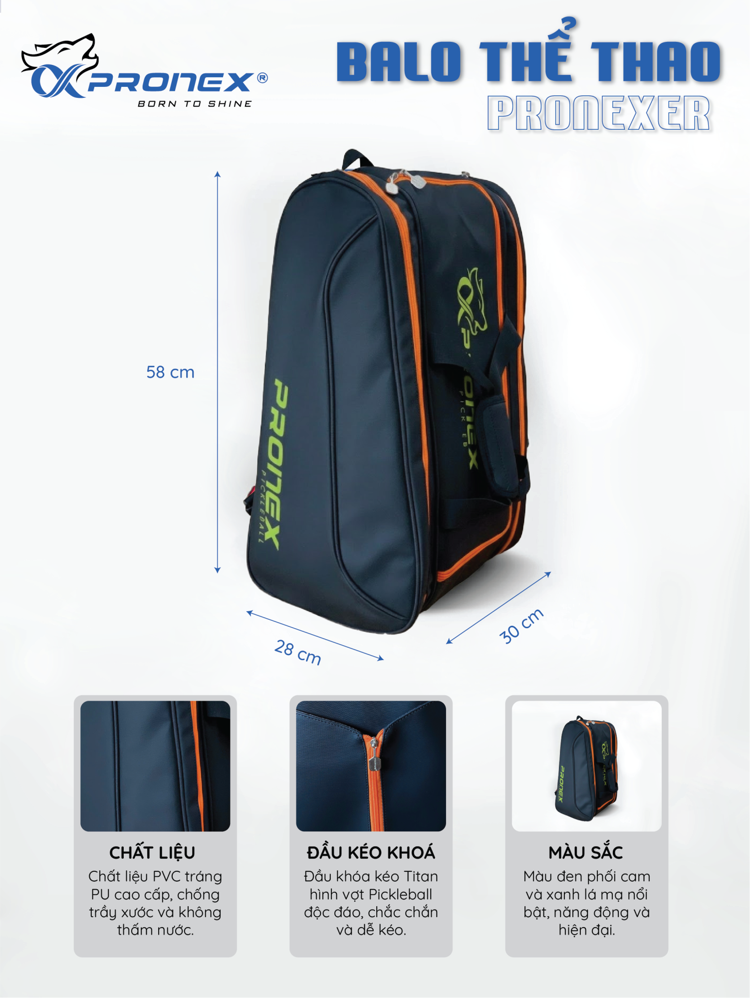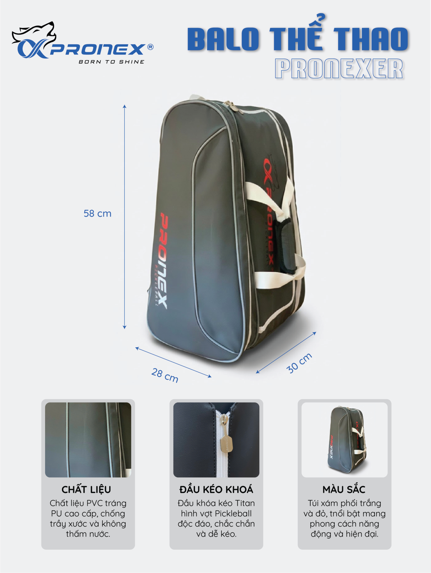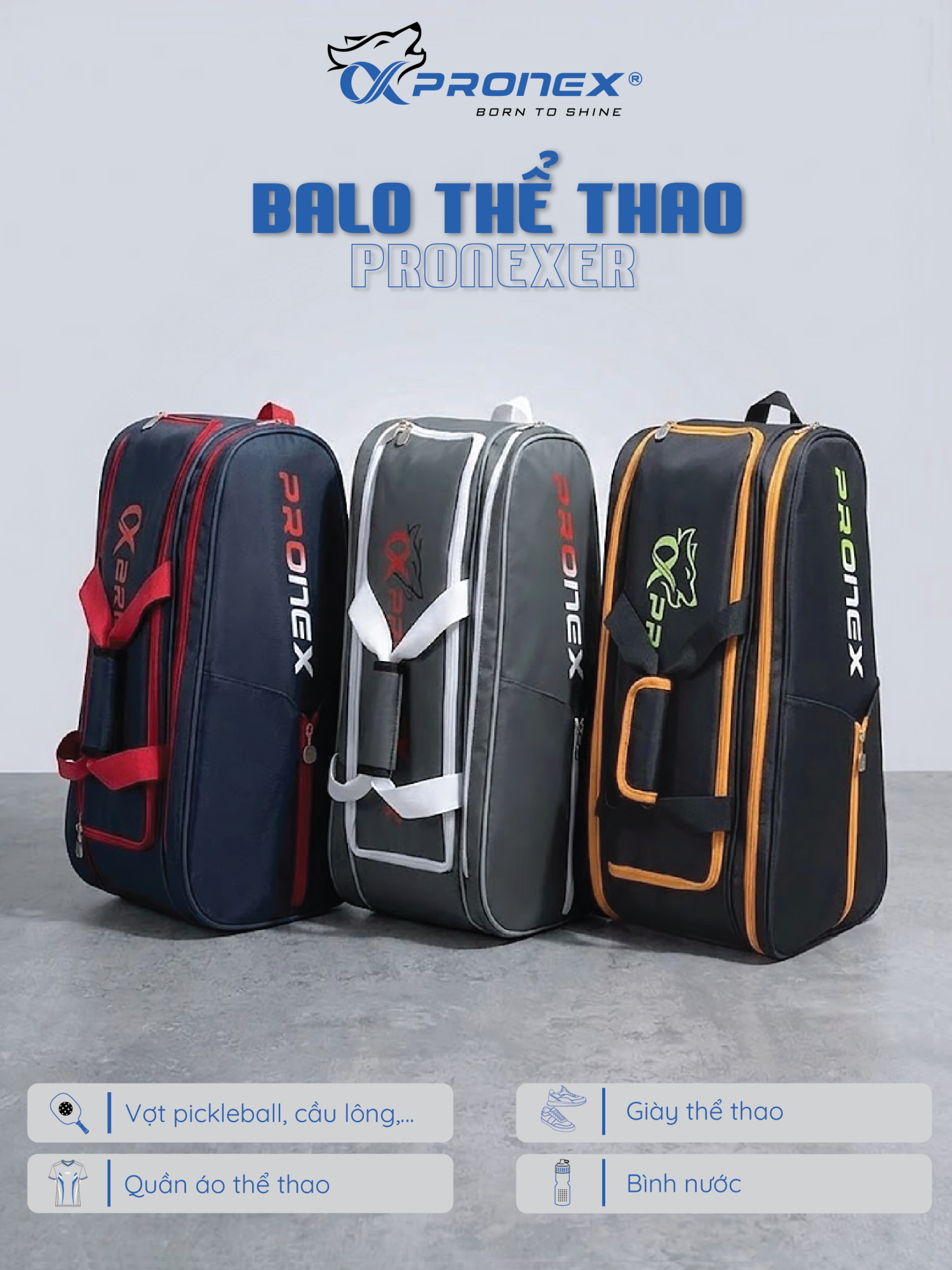 Balo thể thao PRONEXER được thiết kế dành riêng cho người chơi thể thao hiện đại, đặc biệt phù hợp với Pickleball, cầu lông, gym… Form balo đứng gọn gàng, mạnh mẽ kết hợp cùng màu sắc nổi bật giúp bạn luôn nổi bật trên sân.