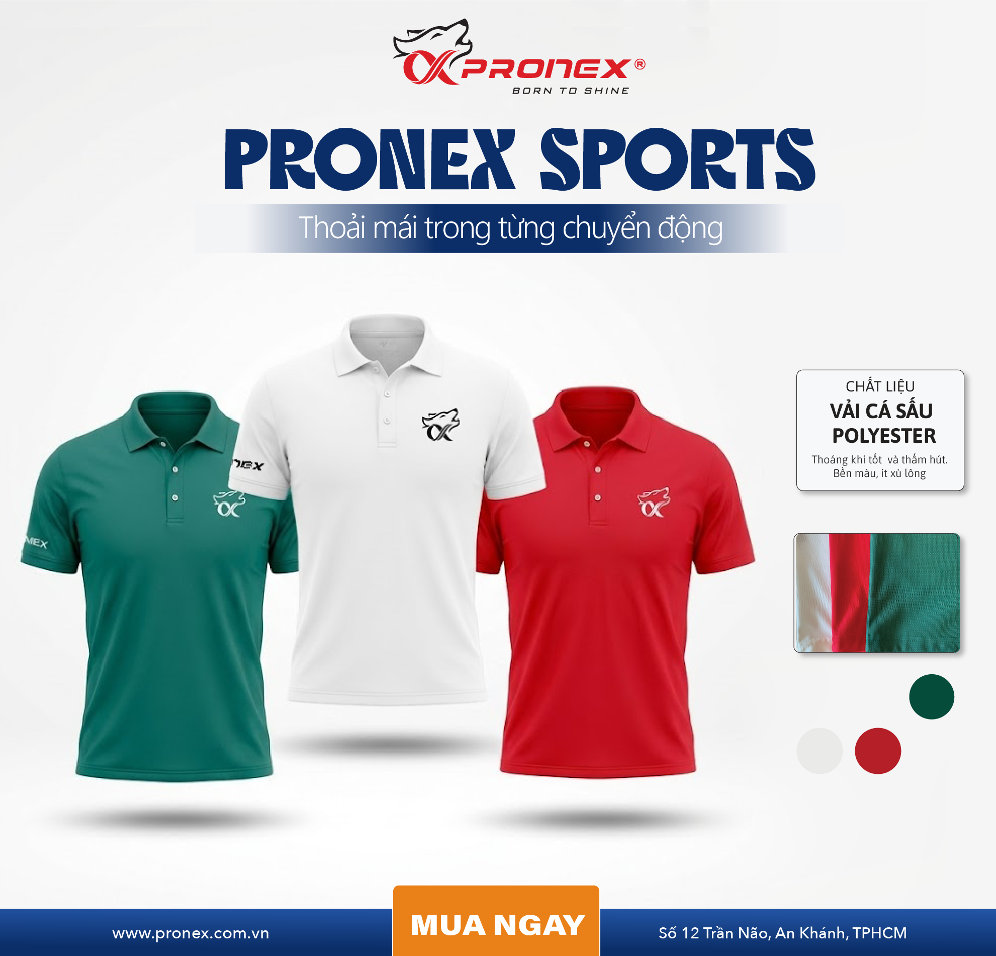 PRONEX – thương hiệu thể thao Việt mang đến dòng áo polo thể thao hiện đại, tối giản nhưng cực kỳ năng động. Thiết kế chuẩn form, chất liệu cao cấp giúp bạn luôn thoải mái và tự tin trong mọi hoạt động.