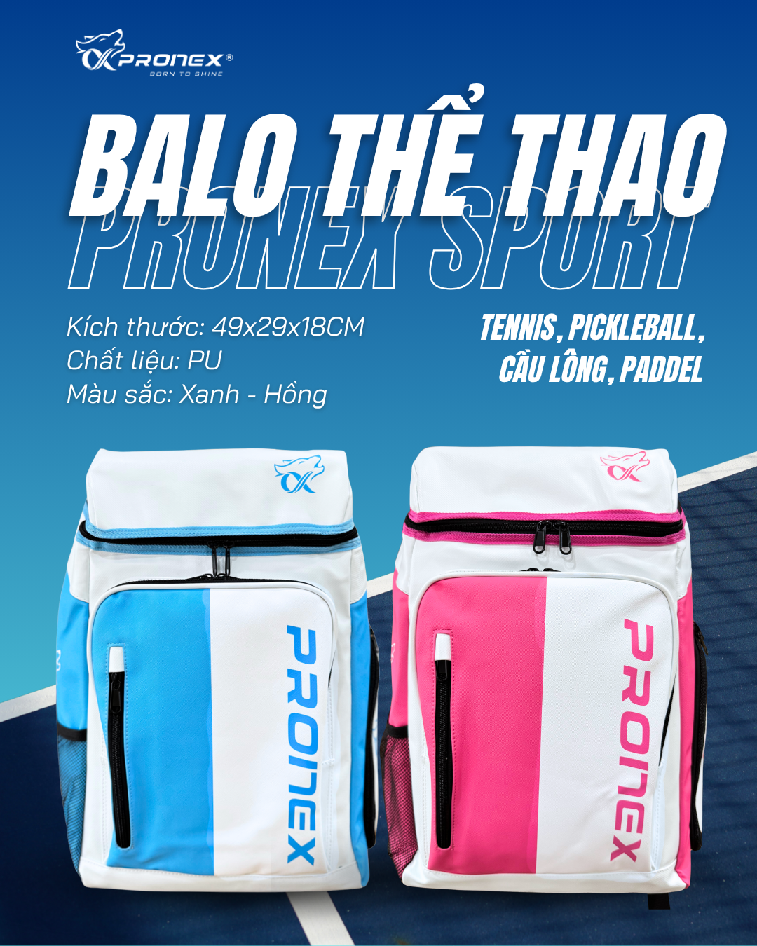 Balo thể thao Pronex phù hợp cho đi chơi thể thao, thi đấu, đi chơi, đi làm và đi học